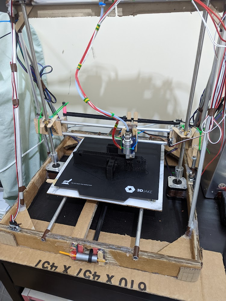 Designed and prototyepd a cardboard 3D printer. The purpose of making this was to have a functional 3D printer at a fraction of the cost of commercial ones. At the time of making, the printer was 5x more economical than buying a commercial printer and attained similar quality prints with proper calibration. The printer employed Marlin firmware and its stepper motors were controlled by an Arduino Mega-based controller.